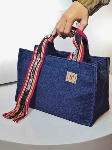 Tote bag ini sama dengan konsep produk yang telah hadir sebelumnya hanya berbeda volume. Ciri khas seri Martha adanya Tenun Tanimbar yang tersampir di sampingnya melengkapi figur tas bersiluet kotak ini.